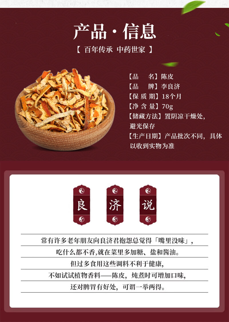 李良济陈皮丝老陈皮干70g